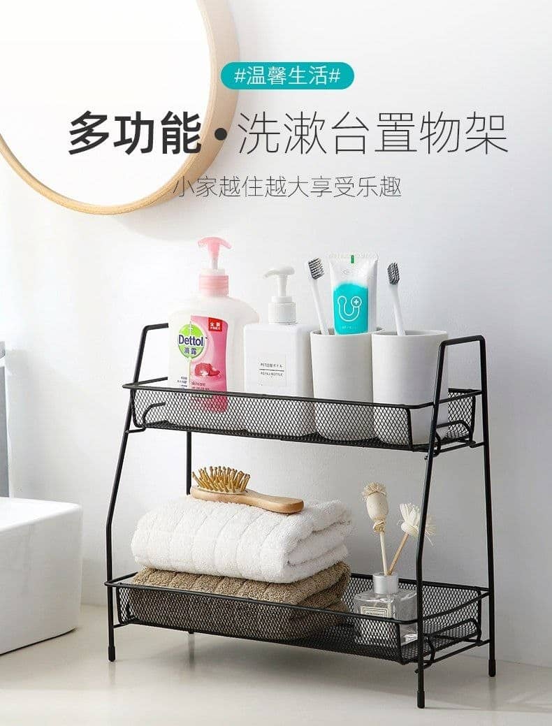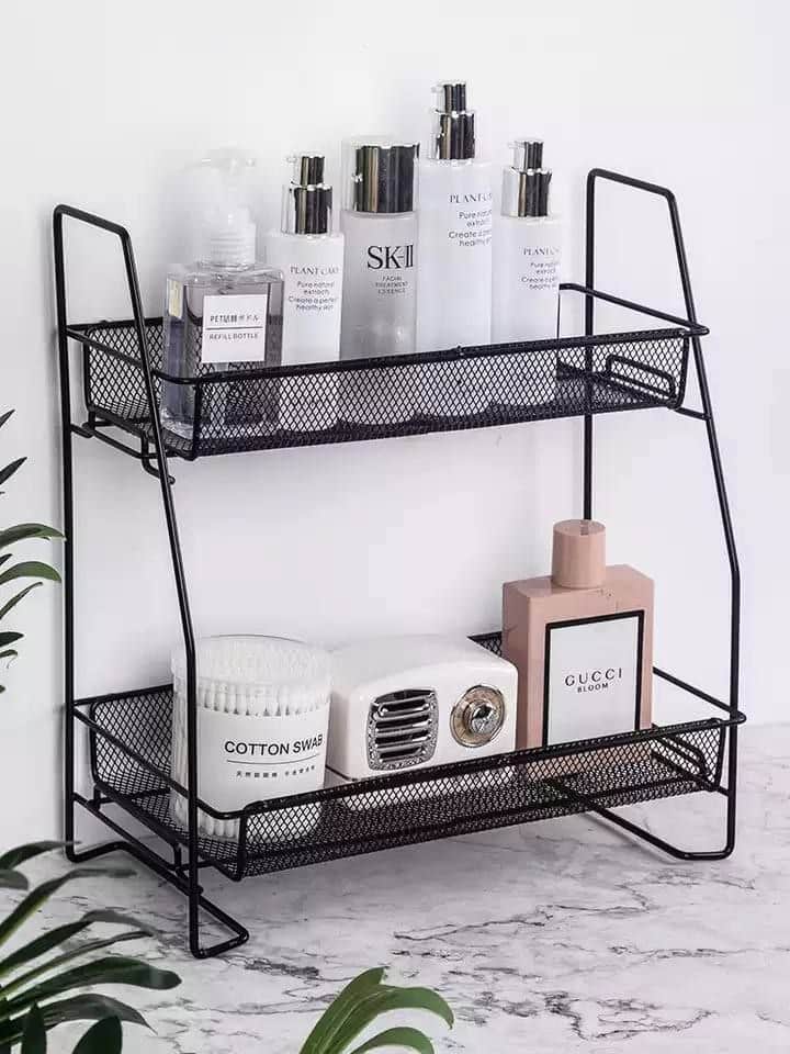 2-Tier Metal Mesh Storage Rack